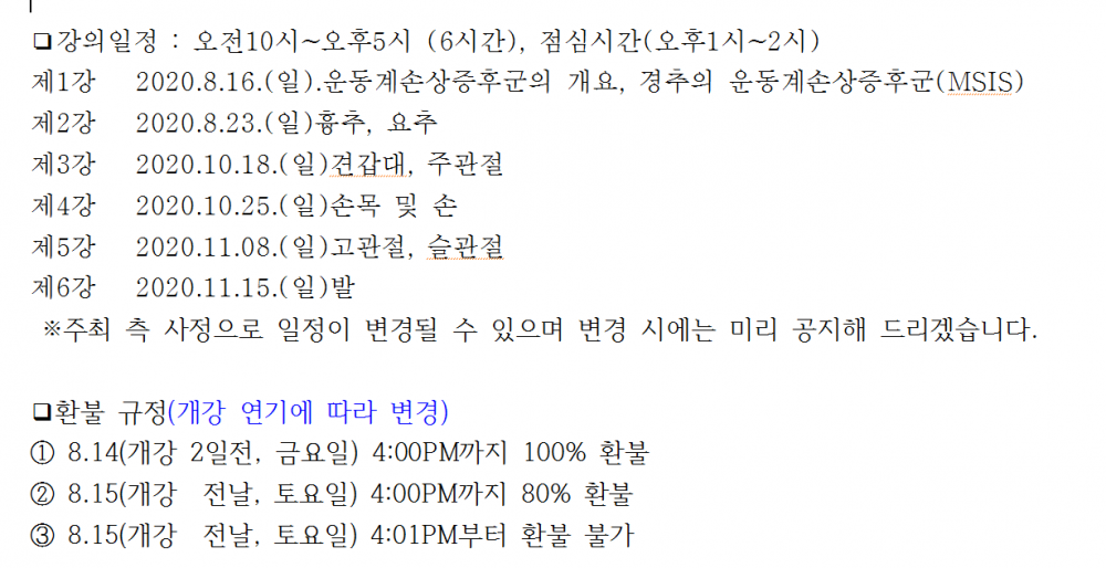 ❑환불 규정(개강 연기에 따라 변경)
