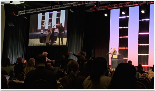 데이빗이 바이올린을 들고 등장했을 때, 무언가 특별한 순간이 예상되었지만, 그가 직접 미국 컨트리 음악을 바이올린으로 연주하기 시작하자, 스티븐과 레베카는 마치 사전에 약속이라도 한 것처럼 컨트리 댄스를 추기 시작했습니다. 이러한 활기찬 분위기는 곧바로 축제와 같은 환경으로 변모했으며, 60대 여성까지도 함께 무대에 올라 춤을 추며 분위기에 동참했습니다. 이 활발한 바이올린 연주는 자연스럽게 데이빗의 치유 과정을 드러내며 강의에 멋진 기법을 더했습니다.