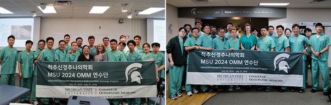 미시건주립대학교 오스테오패시의학대학 초청으로 미시건주립대 오스테오패시의학 전문의(DO)들에게 한국 추나요법을 소개하고 직접 추나요법을 실습하는 교육을 진행함.